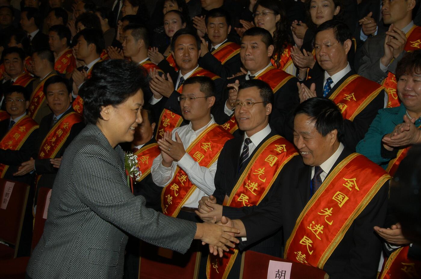 王迪董事長(二排右二)參加全國先進民營企業表彰大會,受到中央政治局委員、國務院副總理劉延東(時任全國政協副主席、中共中央統戰部部長)親切接見。